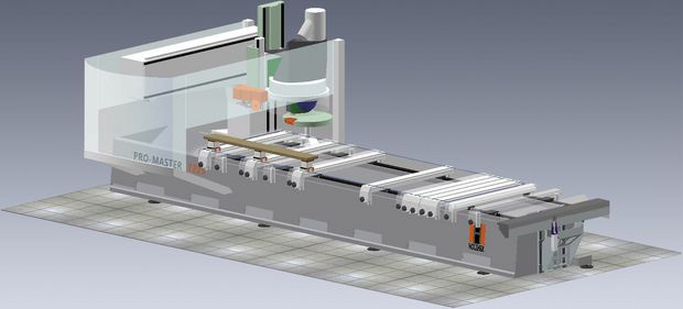 A practical upgrade feature, particularly for 5-axis operation, is the 3D simulation and collision control. With this option customers obtain perfect 3D simulation of their HOLZ-HER machine, allowing them to simulate production of the workpiece even before starting production, thus preventing any possible collisions between milling spindle, tool, machine table and suction cups.